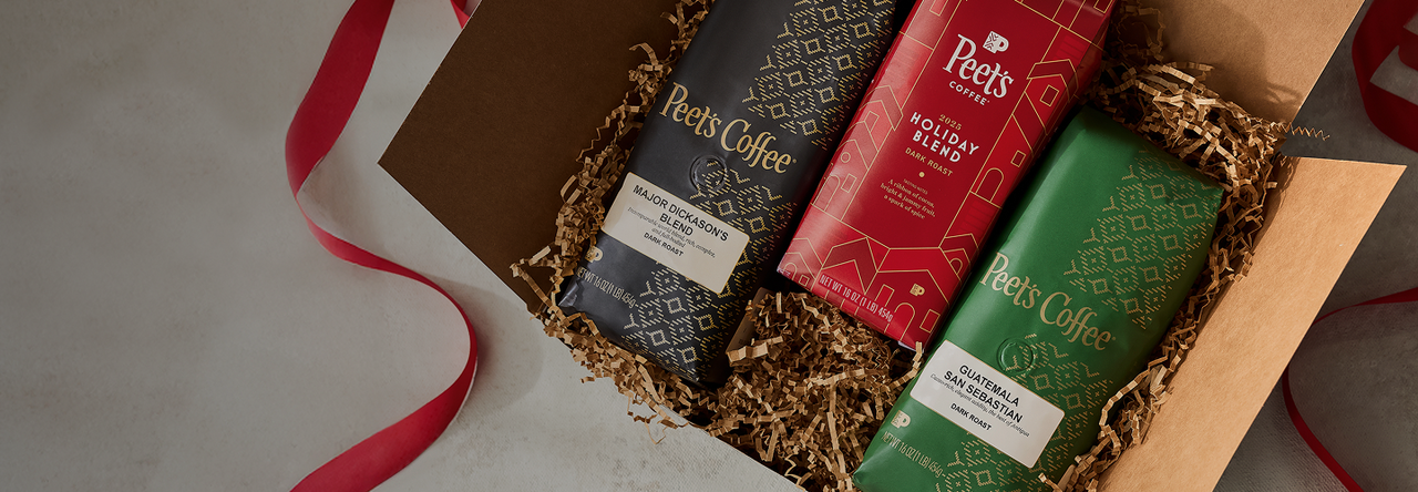 Holiday Blend 2025 scintillates with its interplay of cocoa, jammy fruit, and a spark of spice. Brew—and gift—the star of the season. Available in regular, decaf, and single serve pods.