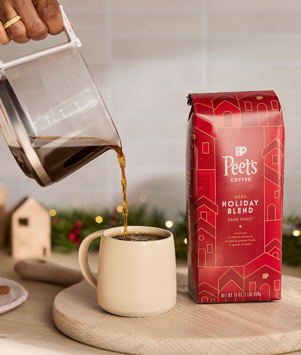Holiday Blend 2025 scintillates with its interplay of cocoa, jammy fruit, and a spark of spice. Brew—and gift—the star of the season. Available in regular, decaf, and single serve pods.