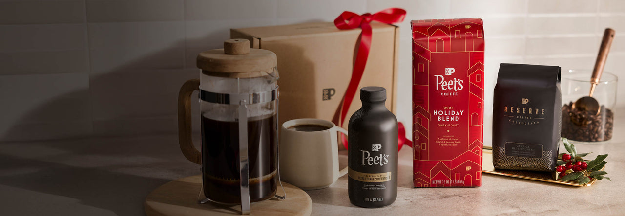 Holiday Blend 2025 scintillates with its interplay of cocoa, jammy fruit, and a spark of spice. Brew—and gift—the star of the season. Available in regular, decaf, and single serve pods.