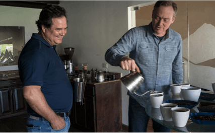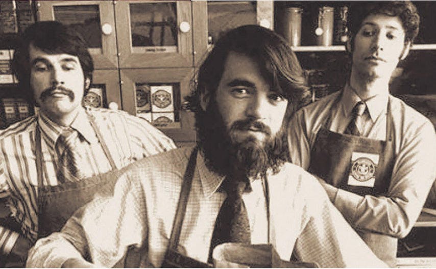 Three young entrepreneurs approach Mr. Peet to learn the critical roasting and blending aspects of the coffee business. He provides them with training as well as the roasted coffee beans for their new venture, Starbucks. Yes, that Starbucks.