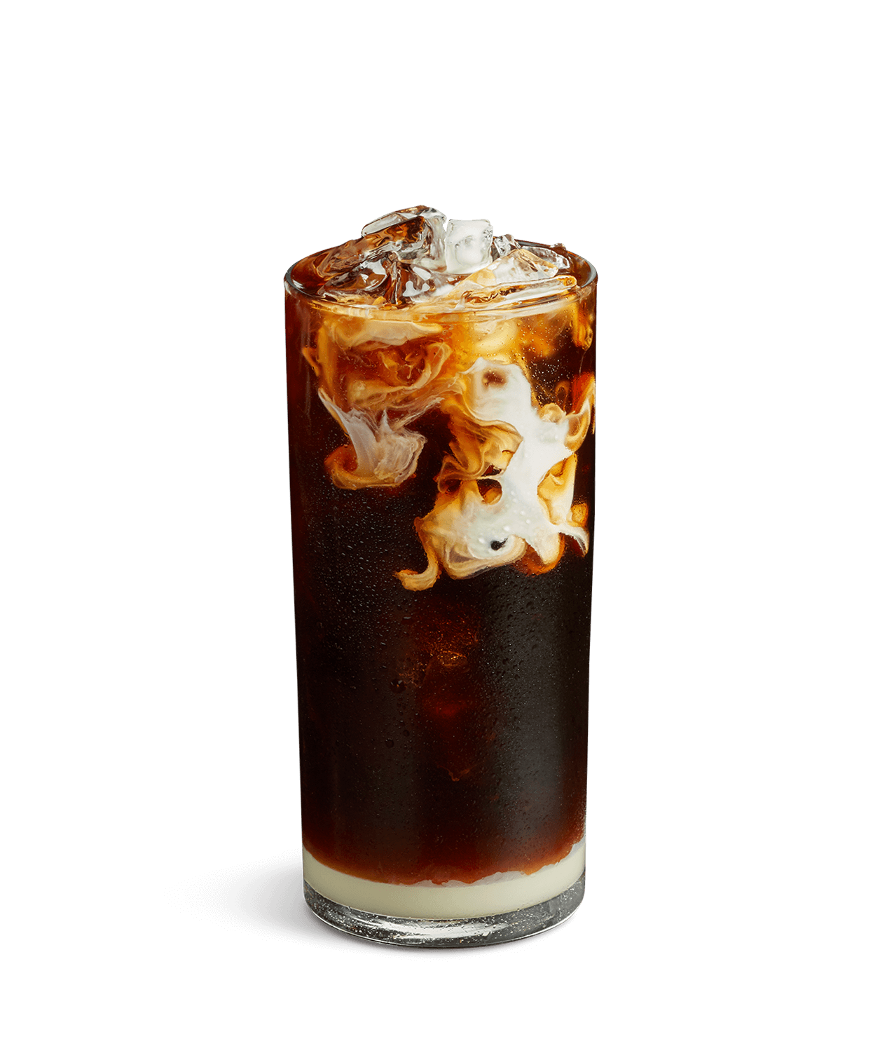 Layered sweetened condensed milk, Cold Brew iced coffee, chicory infused simple syrup, and a float of half and half.
