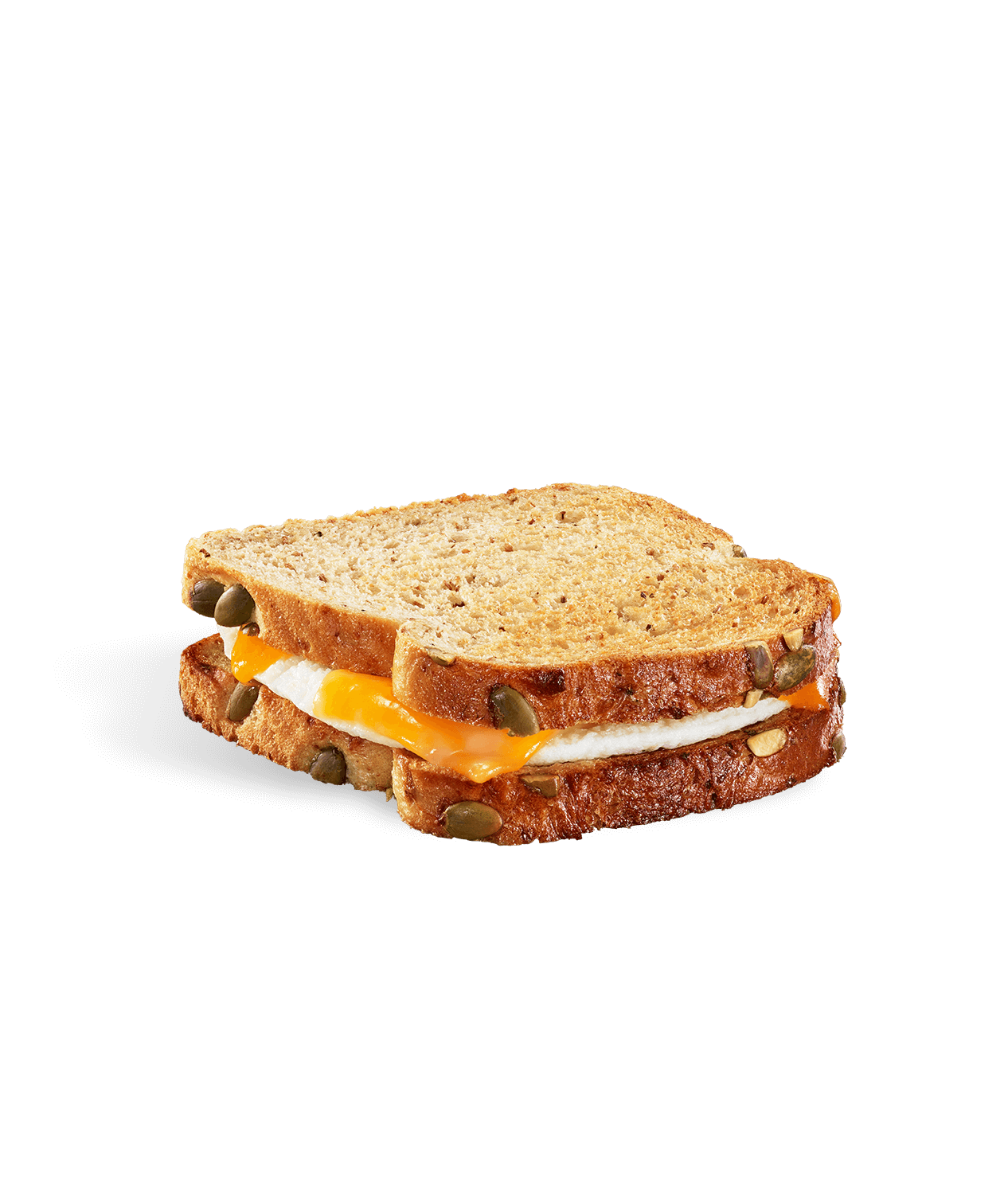 Homestyle fried egg, colby jack & cheddar cheeses on Manchester malt bread (vegetarian).