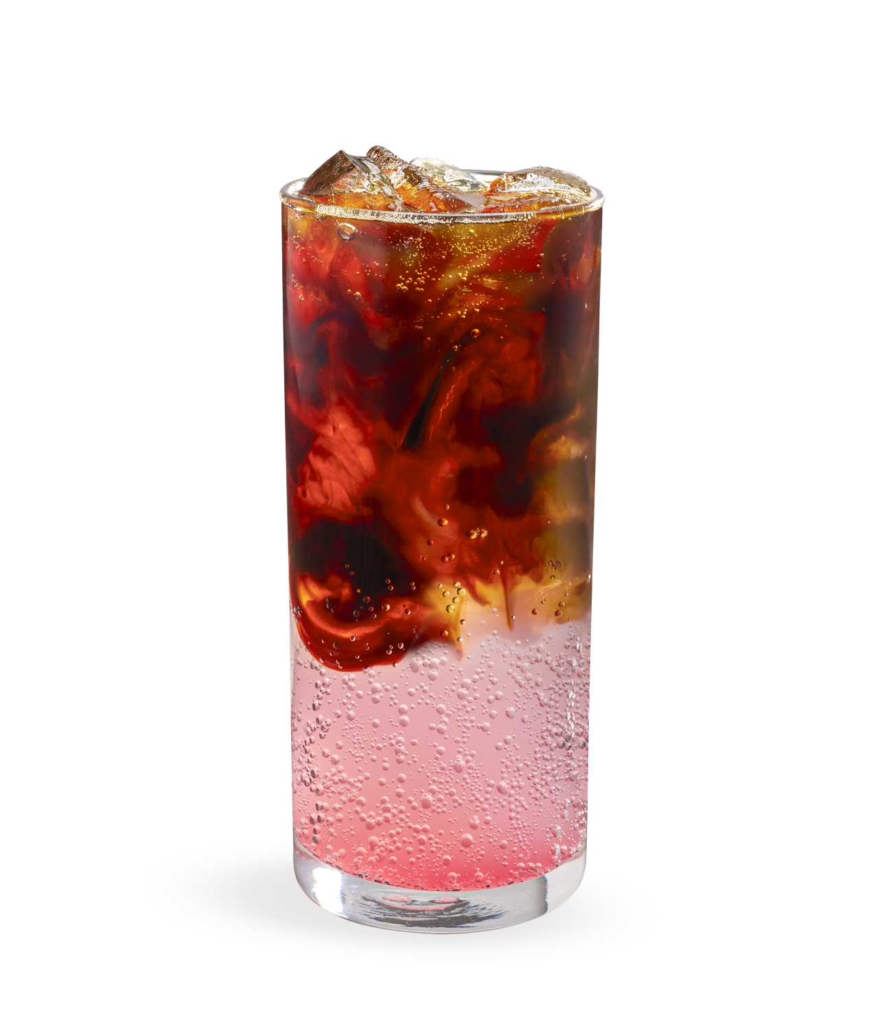Baridi Cold Brew, grapefruit flavored syrup, and club soda are layered over ice for a refreshing beverage with an eye-catching gradient effect.
