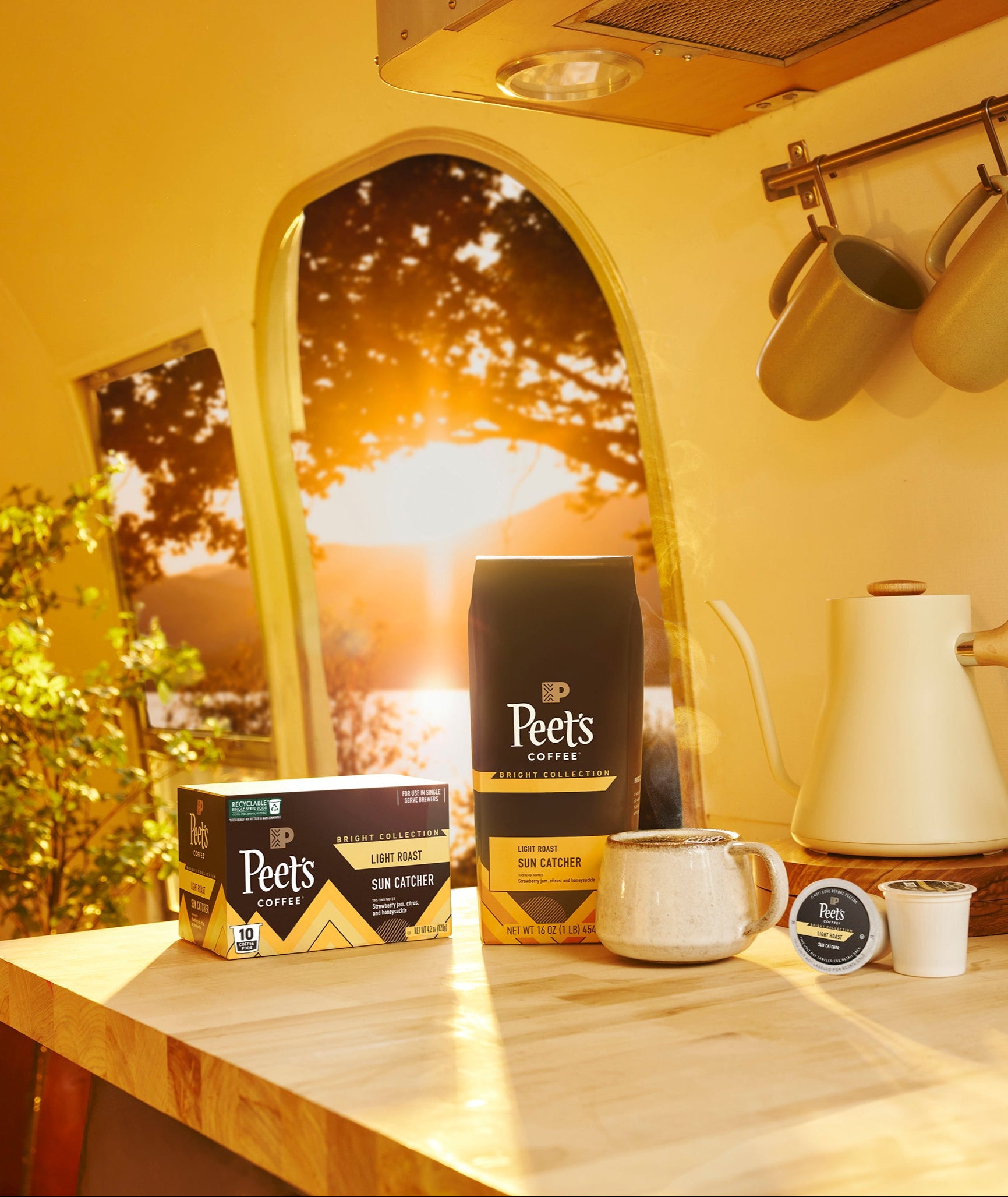 Sun Catcher shines with vibrant notes of strawberry jam, citrus, and honeysuckle. This bright roast blends balanced Brazil with aromatic Kenya for a vivid, complex coffee. Less roasty, more radiant...