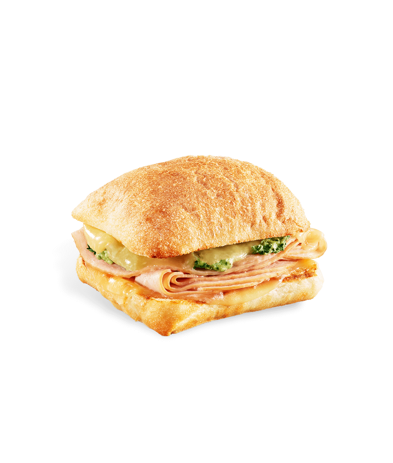 Inspired by cacio e pepe, our Roasted Turkey Parmesan Ciabatta serves up roasted turkey, provolone, and a parmesan black pepper spread with spinach on pillowy, toothsome ciabatta. With 39g grams of protein, it’s the perfect robust and satisfying high-protein meal.